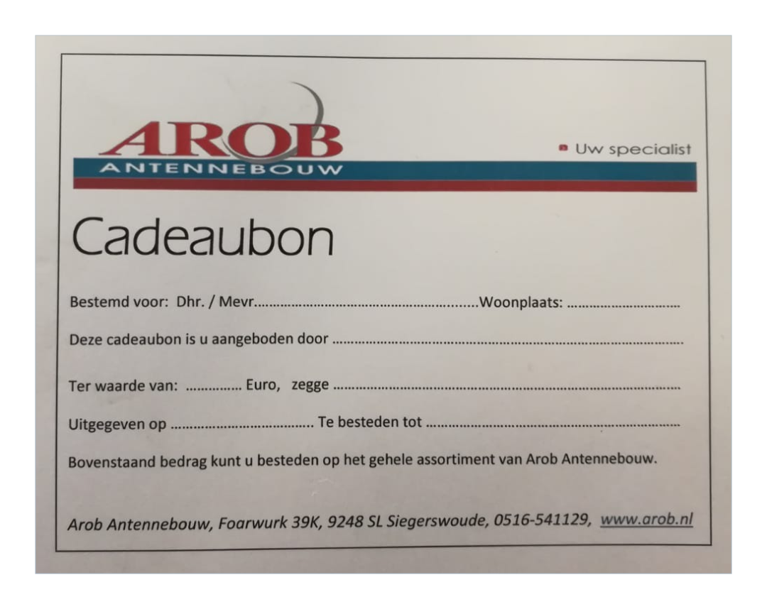 De Arob Antennebouw cadeaubon, leuk om te geven en om te krijgen!