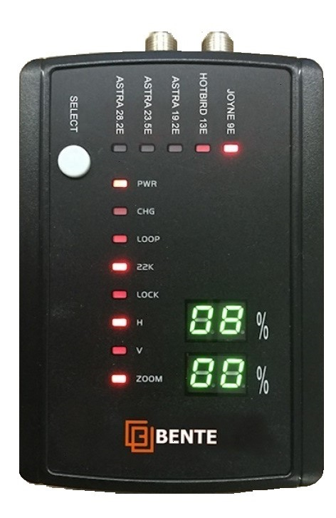 Wat de Bente zo goed maakt is dat u de satelliet selecteert die u wilt ontvangen en de Satfinder alleen reageert (pieptoon) wanneer hij het signaal hiervoor ontvangt. In plaats van dat de Satfinder op elke signaal reageert die hij krijgt, reageert hij alleen op signaal van de satelliet die u wilt. Dit maakt de Satfinder dan ook echt Pake en Beppe proof. De Satfinder laat precies de kwaliteit en sterkte van het binnenkomende signaal zien met een percentage. Aan de hand hiervan kunt u de schotel fijnafstellen.