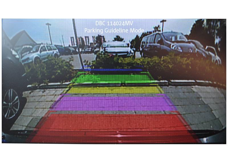 Multi View achteruitrijdcamera met verschillende beeldperspectieven d.m.v. een druk op de knop: Zoom-functie, ultra-brede kijkhoek, beeld met hulplijnen, split-screen en LDC (vertekening gecorrigeerd).