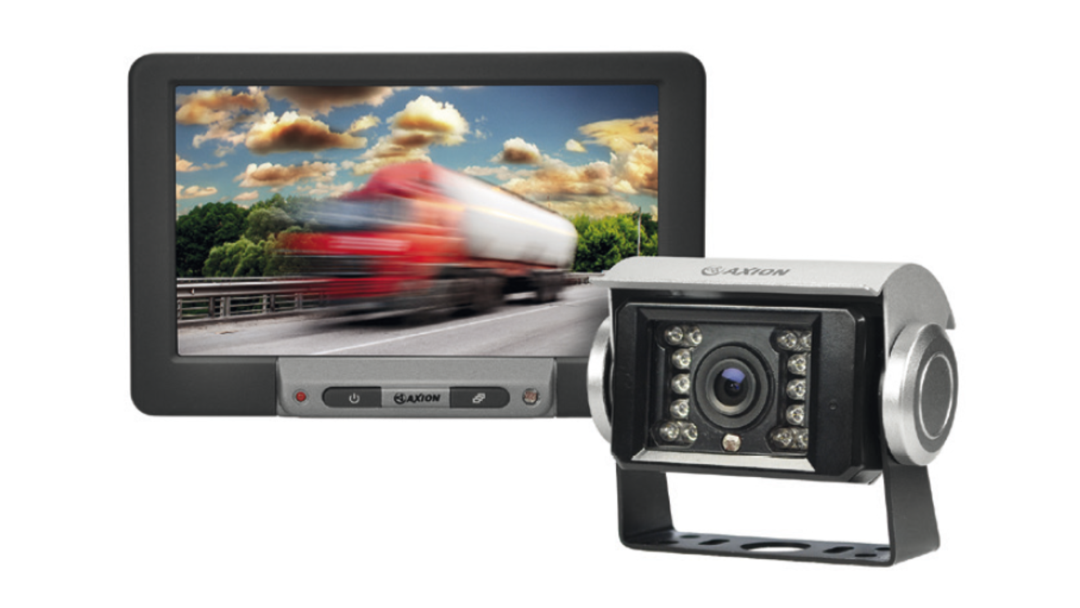AXION achteruitrijcamera systeem met een 7" inch (17,78 cm) TFT LCD scherm. De kleurencamera is voorzien van dag/nacht omschakeling. De set is compleet met monitor bekabeling en camera.