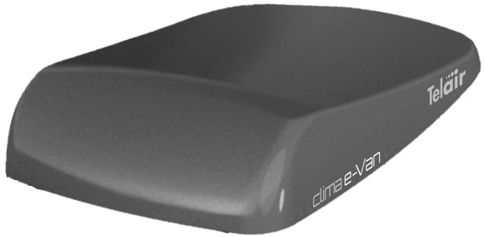 Telair CLIMA e-VAN bovenkap buitenunit. Verkrijgbaar in wit en zwart.