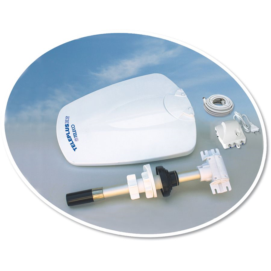 Met de meegeleverde mast installeeert u de Teleplus X2 in een hangkastje. Optioneel is de 1,65 meter lange teleco SF165 schuifmast leverbaar, waarop deze antenne ook past.