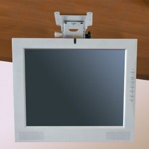 TFT-houder voor het plafond met draai mogelijkheid – Verstelbaar – Kantelbaar – Automatische vergrendeling in gesloten positie – Maximaal draagvermogen: 10 kg – Gewicht: 0,850 kg – Afmetingen: Gesloten = 343x114x58 Hoogte mm – Kleur: Zilver