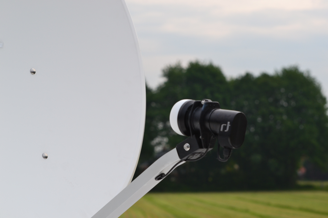 Hier een voorbeeld van een automatische schotel (met LNB aan de arm aan de voorzijde van de schotel).
