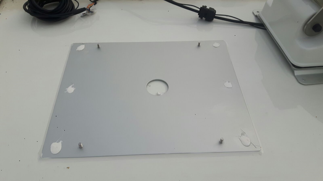 4. De juiste locatie voor het doorvoergat van de bekabeling bepalen, hierna wordt het gat naar binnen geboord en de dakdoorvoer op het dak gelijmd;