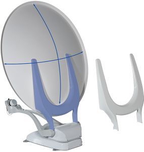 Hier een voorbeeld van een automatische schotel (met LNB aan de arm aan de voorzijde van de schotel).