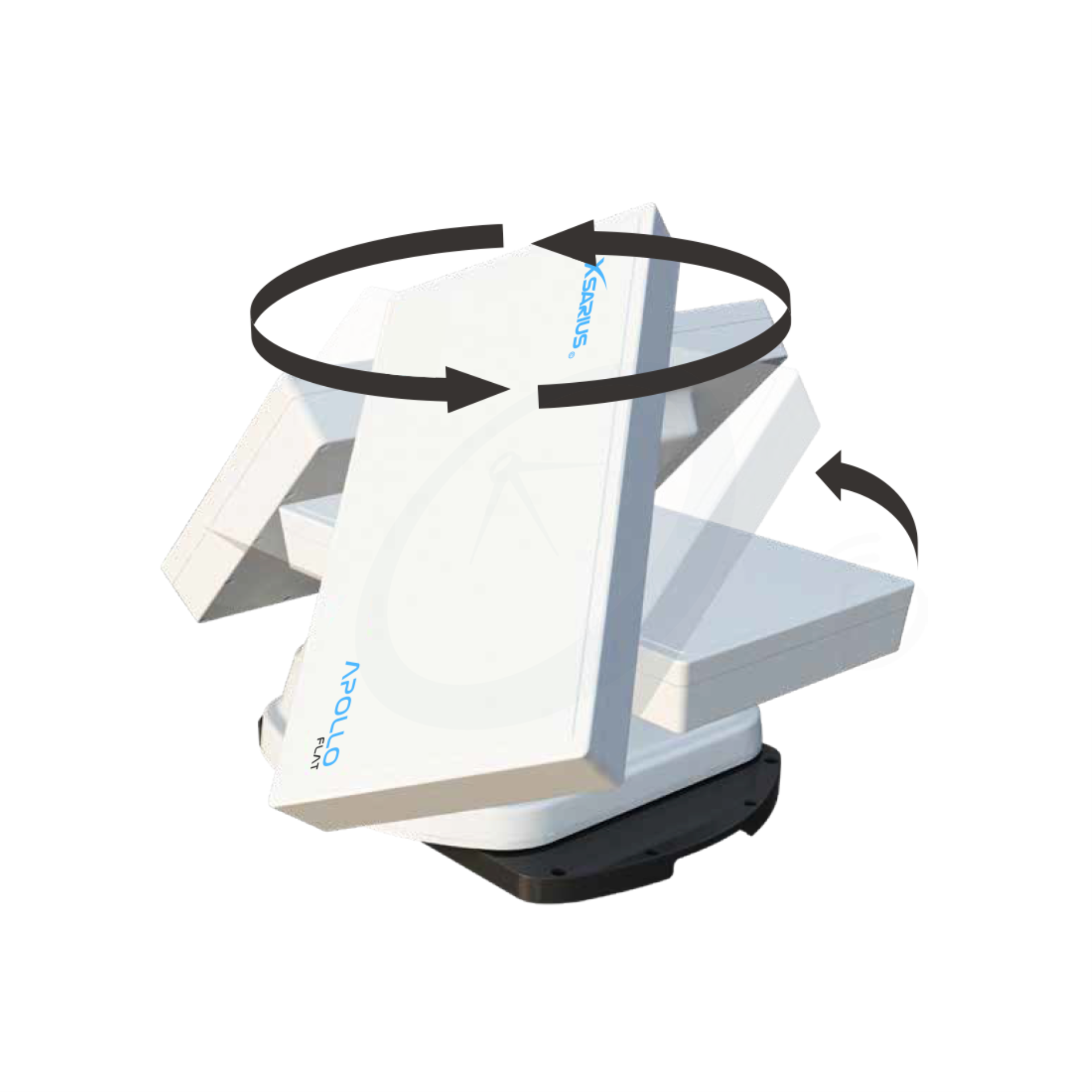 Het basis vergrendelings- en positioneringssyteem houdt de antenne stevig op zijn plek wanneer bijvoorbeeld een camper of caravan zich voortbeweegt. De Xsarius Apollo Flat heeft een platte ondergrond en wordt tevens geleverd met aluminium bevestigingsplaat.