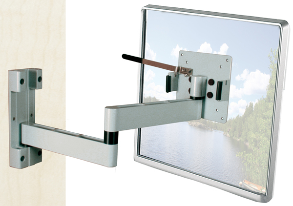 Wanneer de muurbeugel volledig is uit geklapt staat deze ca. 393mm van de muur af. Wanneer de beugel is ingeklapt heeft deze de volgende afmetingen: formaat dichtgeklapt: 250 x 210 x 33 mm ( b x h x d ),