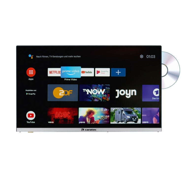 TV met 55cm (22") beelddiagonaal uit de Exclusive serie met een bijna randloos scherm. Voorzien van tuners voor DVB-T2 HD, DVB-S2 en CD/DVD speler, beveiliging tegen over- en onderspanning,besturing voor Caratec Smart-D Satellietantennes en geïntegreerde Bluetooth-zender.Smart TV-functie met Android TV 9.0.