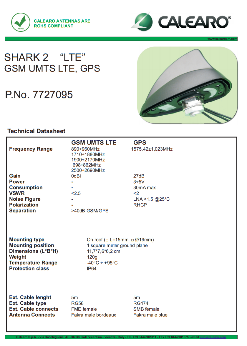 Calearo Shark II DUPLEX LTE GSM-UMTS LTE/ GPS antenne