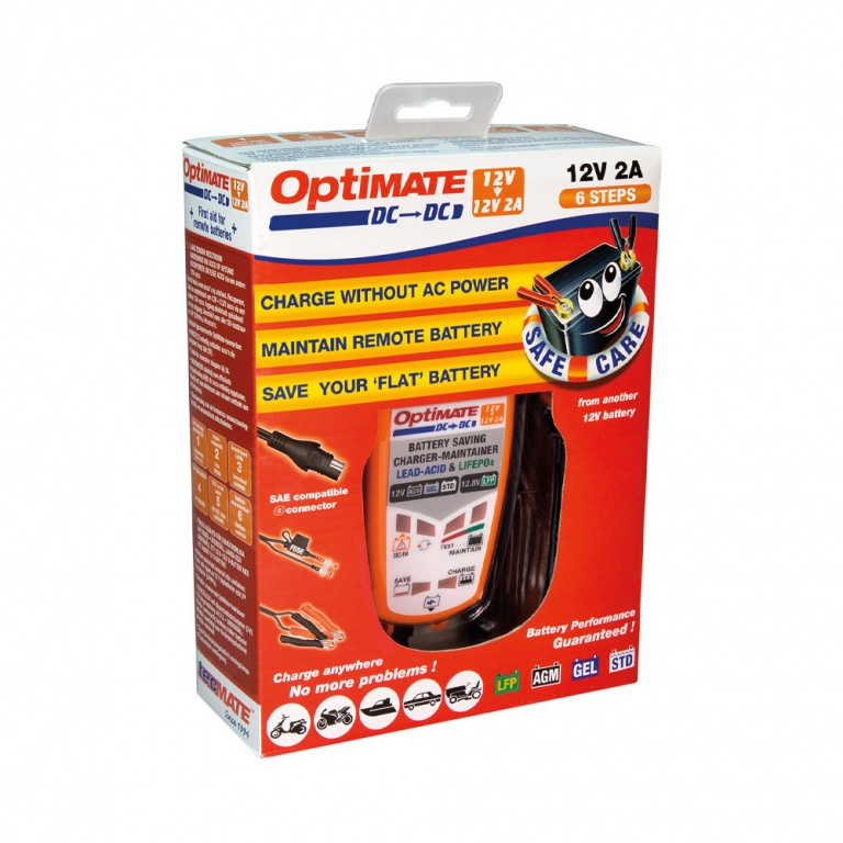 Druppellader OptiMate DC-DUO 12V 2A Off-grid - voor het opladen van een 2e accu. LAAD UW 12V – 13.2V ACCU OP VIA EEN ANDERE 12V-ACCU! GEEN NETSTROOM NODIG. Ideaal voor zowel loodzuur als LFP (LiFePO4) accu’s. Laad de accu van uw gesleepte motorfiets, quad of speedboot op terwijl u onderweg bent. OptiMATE DC-naar-DC haalt stroom uit de accu van uw eigen voertuig of een externe 12V-accu om een andere 12V – 13.2V -accu te recupereren, op te laden en in stand te houden. De zeer efficiënte langdurige onderhoudsmodus van de OptiMATE DC-naar-DC beschermt de bronaccu en neemt enkel stroom af wanneer de te laden accu stroom nodig heeft. De OptiMATE-onderhoudsmodus houdt de accu volledig opgeladen, voorkomt overladen, verlengt de levensduur en verbetert de prestaties van de accu. OptiMATE DC-naar-DC kan een sterk ontladen sulfaataccu van zelfs 2 volt recupereren. LAADAMPÈRES: 2A GEBRUIK: binnen / buiten (laagste temperatuur: -4 °F / -20 °C). RECUPEREREN: start met lage spanning van 2V IDEAAL VOOR: STD-, AGM- en GEL-accu’s van 12V en Lithium accu’s tussen 3-96 Ah. INGANG: 12-16 V, 2,7 A max VEILIG: geen risico op overladen. Geheel veilig voor voertuigelektronica. Vonken worden onderdrukt. Veilig accuonderhoud voor de lange termijn. Automatische uitschakeling bij kortsluiting of wanneer accu wordt losgekoppeld. 3 jaar beperkte vervangingsgarantie.