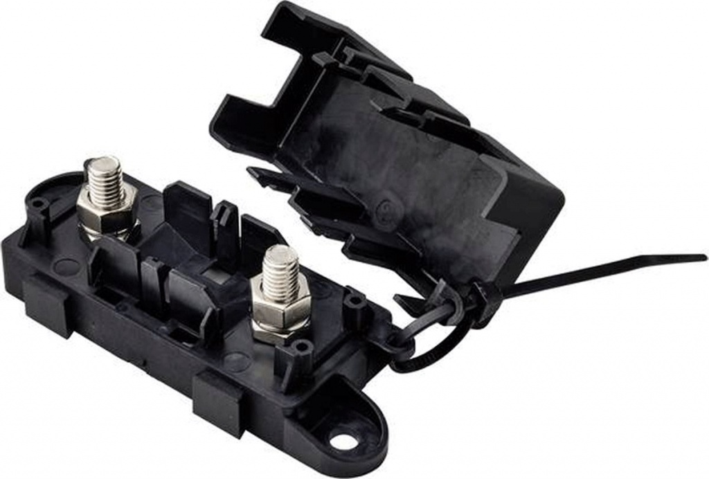 Midi fuse houder voor midi zekeringen -Behuizing gemaakt van hoge kwaliteit kunstof. -Zekeringhouder met afdekkap voor midi zekeringen tot 100amp. -Houders onderling koppelbaar. -Voor kabeloog 5mm. -Met bevestigingsogen.
