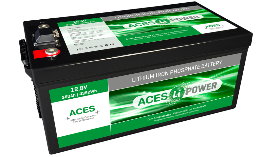 Batterij 12V 360Ah ACES HFA LiFePO4 In kunststof ABS behuizing en M8 polen met Bluetooth, heating en CAN.