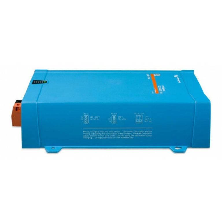 De MultiPlus 12/1600/70 is een combinatie van een krachtige zuivere sinusgolfomvormer met een vermogen van 1600 VA (1300 Watt), een geavanceerde acculader met adaptieve laadtechnologie van 70 Ampère, en een supersnelle AC-wisselschakelaar in een enkele compacte behuizing. Deze MultiPlus wordt geleverd zonder de benodigde 50mm² kabels.
