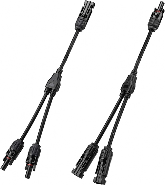 Solarpanel MC-4 Y splitter set (2stuks) man/ vrouw Met MC4-Y-connectoren met dubbele socket kunnen twee zonnepanelen parallel worden aangesloten en zijn ze voorzien van mannelijke en vrouwelijke snelkoppelingen. -1 stuks: 1 man naar 2 vrouw en 1 stuks: 1 vrouw naar 2 man. Specificaties: -Nominale Stroom: 30A -Geschatte Voltage: DC1000V Kabel doorsnede: 4mm². Geschikte Single Core Kabel Sectie: 1.5mm² -- 6mm² Snelle en eenvoudige assemblageverwerking en eenvoudige verwijdering van pluggen zonder de hulp van enig extra instrument Zonne-connector.
