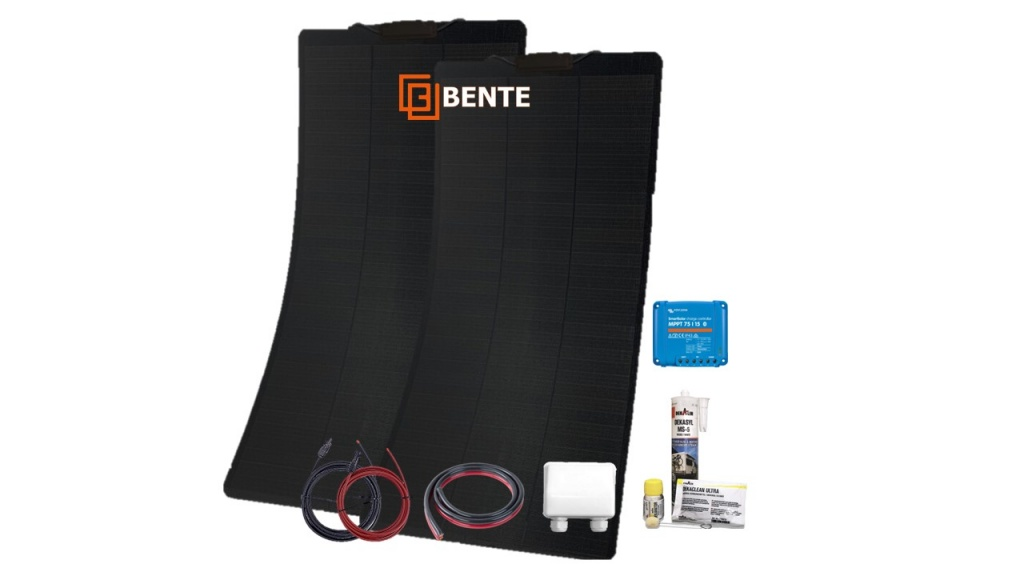 Solarset Bente-8 2x 100Watt semi-flexibel paneel + Victron MPPT 75/15 complete set Zonnepaneel licht en flexibel Dit betreft een complete hoogwaardige zonnepaneel set voor uw camper of caravan. De set hebben we voor u samengesteld zodat u zelf niet meer hoeft na te denken wat er allemaal nodig is voor het aansluiten van een zonnepaneel op het dak van uw camper of caravan. Kenmerken semi-flexibel zonnepaneel: -Hoge module conversie-efficiëntie -Hoogwaardige cellen en ontwerp met gedeeltelijke cellen, lagere serie weerstand en vermindering van de vermogensdegradatie -Geoptimaliseerde prestaties bij weinig licht. -Dankzij de geïntegreerde bypass-diodes kan het paneel werken wanneer gedeeltelijk in de schaduw -Interne aluminiumplaat verbetert de duurzaamheid door het risico op microscheurtjes in cellen te verminderen Victron SmartSolar MPPT (12/24V) laadregelaar Een zonnelader verzamelt energie van uw zonnepanelen en slaat deze op in uw accu's. Met de nieuwste en snelste technologie maximaliseert SmartSolar deze energie-oogst door intelligente aansturing, zodat een volledige oplading in de kortst mogelijke tijd wordt gerealiseerd. SmartSolar houdt de accu in goede conditie en verlengt zo de levensduur. De SmartSolar oplaadregelaar zal zelfs een zeer lege accu opnieuw opladen. Het kan werken met een accuvoltage dat zo laag ligt als 0 Volt, op voorwaarde dat de cellen niet permanent gesulfateerd worden of anders beschadigd werden. TÜV Solar kabel 4,0mm² vertind Met deze hoge kwaliteit solar kabels (rood en zwart) (4mm2) kunt u een veilig en goed werkend solar systeem installeren. Onder andere geschikt voor het aansluiten van zonnepanelen op een omvormer. Flexibele kabel met enkele kern, geschikt voor binnen en buiten. Niet geschikt voor onbeschermd begraven in de grond. Ook is deze kabel ozon en UV resistent. De kabels kunnen worden aangesloten aan MC4 connectoren (bijgeleverd in de set). Twinflex 2x 4 mm² PVC kabel 100% koper Twinflex is een accukabel gecombineerd van voeding (rood) en neutraal (zwart) met extra transparante PVC mantel. Dekaseal MS-5 lijmkit VERLIJMEN EN AFDICHTEN - TWEE TAKEN, ÉÉN OPLOSSING: Het achteraf inbouwen van een satellietsysteem, het bevestigen van zonnepanelen of montagehouders, haken en spiegels - allemaal klassieke taken waarmee camper- en caravanbezitters keer op keer worden geconfronteerd. En met onze producten kunnen hobbyvakmensen dit zelf doen. Verlijmen biedt talloze voordelen ten opzichte van mechanische verbindingsprocessen, die nog verder worden verbeterd door het gebruik van moderne MS-polymeerproducten Lijmset DEKAsyl MS-5 bestaande uit: -1 x 290 ml patroon Dekasyl MS-5 krachtlijm wit -1 x 30 ml fles Decavator speciale reiniger en activator -1 x reinigingsdoekenset (1x vochtige doek / 1x droge doek) Inhoud van de set: - 2x Solarpanel 100Watt/12V semi-flexibel 1230 x 470 x 2mm / 2,2KG - Victron SmartSolar MPPT 75/15 laadregelaar - Solarkabel 4,0mm2 R/Z 5 meter +MC-4 set - Twinflex kabel 2 x 4mm2 5 meter - Dakdoorvoer voor zonnepaneel 2-voudig - MC-4 Y connector set male/female - Dekalin MS-5 lijmkit set + activator + handschoentjes + tissue
