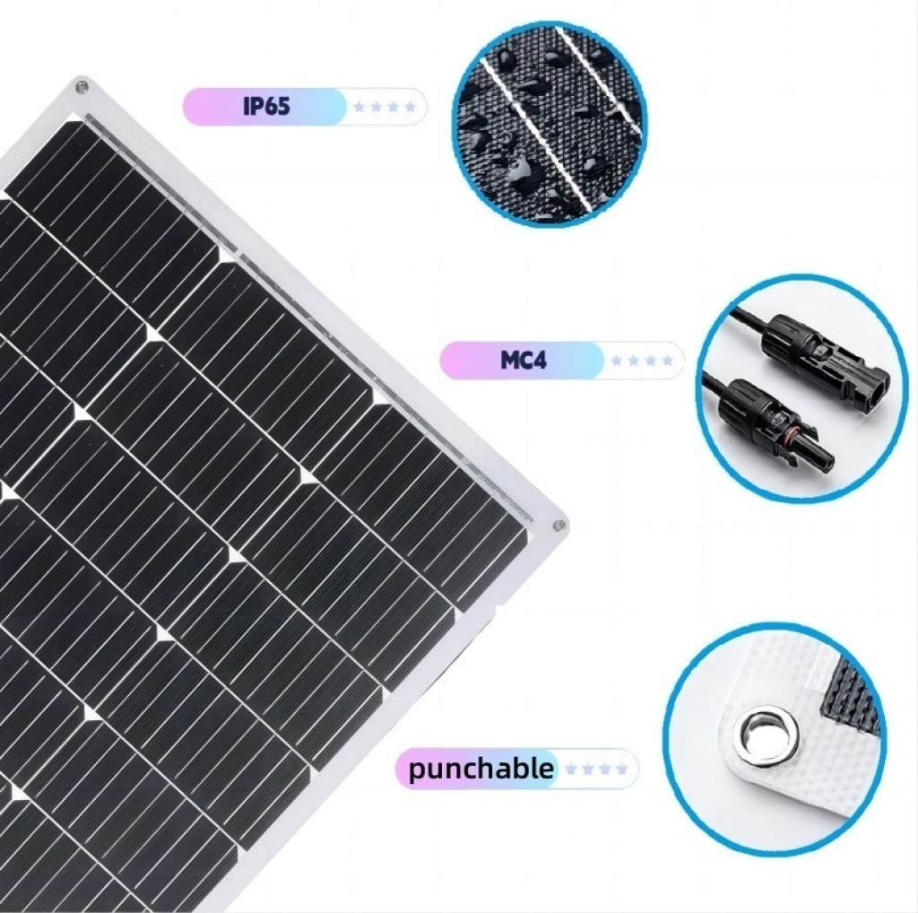 Semi-flexibel ontwerp : met een dikte van slechts 2 mm is dit paneel ideaal voor gebogen oppervlakken, waardoor het perfect is voor installatie op voertuigen, boten en andere onregelmatige oppervlakken.