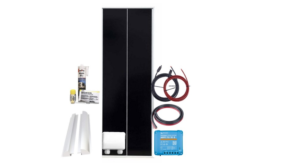 Hoogwaardige Bente solarset 1x100Watt + Victron smart mppt 75/10-complete set Zonnepaneel zwart Dit betreft een complete hoogwaardige zonnepaneel set voor uw camper of caravan. De set hebben we voor u samengesteld zodat u zelf niet meer hoeft na te denken wat er allemaal nodig is voor het aansluiten van een zonnepaneel op het dak van uw camper of caravan. De zonnepanelen hebben een hoog rendement (± 21%), zijn voorzien van een gehard / getemperd glas toplaag die 5x zo sterk is als andere kleine zonnepanelen. Victron SmartSolar MPPT (12/24V) laadregelaar Een zonnelader verzamelt energie van uw zonnepanelen en slaat deze op in uw accu's. Met de nieuwste en snelste technologie maximaliseert SmartSolar deze energie-oogst door intelligente aansturing, zodat een volledige oplading in de kortst mogelijke tijd wordt gerealiseerd. SmartSolar houdt de accu in goede conditie en verlengt zo de levensduur. De SmartSolar oplaadregelaar zal zelfs een zeer lege accu opnieuw opladen. Het kan werken met een accuvoltage dat zo laag ligt als 0 Volt, op voorwaarde dat de cellen niet permanent gesulfateerd worden of anders beschadigd werden. TÜV Solar kabel 4,0mm² vertind Met deze hoge kwaliteit solar kabels (rood en zwart) (4mm2) kunt u een veilig en goed werkend solar systeem installeren. Onder andere geschikt voor het aansluiten van zonnepanelen op een omvormer. Flexibele kabel met enkele kern, geschikt voor binnen en buiten. Niet geschikt voor onbeschermd begraven in de grond. Ook is deze kabel ozon en UV resistent. De kabels kunnen worden aangesloten aan MC4 connectoren (bijgeleverd in de set). Twinflex 2x 4 mm² PVC kabel 100% koper Twinflex is een accukabel gecombineerd van voeding (rood) en neutraal (zwart) met extra transparante PVC mantel. Dekaseal MS-5 lijmkit VERLIJMEN EN AFDICHTEN - TWEE TAKEN, ÉÉN OPLOSSING: Het achteraf inbouwen van een satellietsysteem, het bevestigen van zonnepanelen of montagehouders, haken en spiegels - allemaal klassieke taken waarmee camper- en caravanbezitters keer op keer worden geconfronteerd. En met onze producten kunnen hobbyvakmensen dit zelf doen. Verlijmen biedt talloze voordelen ten opzichte van mechanische verbindingsprocessen, die nog verder worden verbeterd door het gebruik van moderne MS-polymeerproducten Lijmset DEKAsyl MS-5 bestaande uit: -1 x 290 ml patroon Dekasyl MS-5 krachtlijm wit -1 x 30 ml fles Decavator speciale reiniger en activator -1 x reinigingsdoekenset (1x vochtige doek / 1x droge doek) Inhoud van de solarset set: - Solarpanel Shingled 100Watt/12V 1160x450x30mm silver - Victron SmartSolar MPPT 75/10 laadregelaar - Solarkabel 4,0mm2 R/Z 5 meter + MC-4 set - Twinflex kabel 2 x 4mm2 5 meter - Dakdoorvoer kunstof voor zonnepaneel 2-voudig - Montage spoiler aluminium blank 55cm - DEKAsyl lijmkit set + activator + handschoentjes + tissue