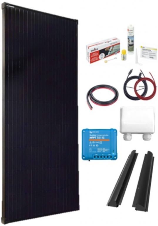 Hoogwaardige Bente solarset 1x200Watt black+ Victron smart mppt 75/15-complete set Zonnepaneel Shingled black Dit betreft een complete hoogwaardige zonnepaneel set voor uw camper of caravan. De set hebben we voor u samengesteld zodat u zelf niet meer hoeft na te denken wat er allemaal nodig is voor het aansluiten van een zonnepaneel op het dak van uw camper of caravan. De zonnepanelen hebben een hoog rendement (± 21%), zijn voorzien van een gehard / getemperd glas toplaag die 5x zo sterk is als andere kleine zonnepanelen. Victron SmartSolar MPPT (12/24V) laadregelaar Een zonnelader verzamelt energie van uw zonnepanelen en slaat deze op in uw accu's. Met de nieuwste en snelste technologie maximaliseert SmartSolar deze energie-oogst door intelligente aansturing, zodat een volledige oplading in de kortst mogelijke tijd wordt gerealiseerd. SmartSolar houdt de accu in goede conditie en verlengt zo de levensduur. De SmartSolar oplaadregelaar zal zelfs een zeer lege accu opnieuw opladen. Het kan werken met een accuvoltage dat zo laag ligt als 0 Volt, op voorwaarde dat de cellen niet permanent gesulfateerd worden of anders beschadigd werden. TÜV Solar kabel 4,0mm² vertind Met deze hoge kwaliteit solar kabels (rood en zwart) (4mm2) kunt u een veilig en goed werkend solar systeem installeren. Onder andere geschikt voor het aansluiten van zonnepanelen op een omvormer. Flexibele kabel met enkele kern, geschikt voor binnen en buiten. Niet geschikt voor onbeschermd begraven in de grond. Ook is deze kabel ozon en UV resistent. De kabels kunnen worden aangesloten aan MC4 connectoren (bijgeleverd in de set). Twinflex 2x 4 mm² PVC kabel 100% koper Twinflex is een accukabel gecombineerd van voeding (rood) en neutraal (zwart) met extra transparante PVC mantel. Dekaseal MS-5 lijmkit VERLIJMEN EN AFDICHTEN - TWEE TAKEN, ÉÉN OPLOSSING: Het achteraf inbouwen van een satellietsysteem, het bevestigen van zonnepanelen of montagehouders, haken en spiegels - allemaal klassieke taken waarmee camper- en caravanbezitters keer op keer worden geconfronteerd. En met onze producten kunnen hobbyvakmensen dit zelf doen. Verlijmen biedt talloze voordelen ten opzichte van mechanische verbindingsprocessen, die nog verder worden verbeterd door het gebruik van moderne MS-polymeerproducten Lijmset DEKAsyl MS-5 bestaande uit: -1 x 290 ml patroon Dekasyl MS-5 krachtlijm wit -1 x 30 ml fles Decavator speciale reiniger en activator -1 x reinigingsdoekenset (1x vochtige doek / 1x droge doek) Inhoud van de solarset: - Solarpanel Shingled 200Watt/12V 1530x670x30mm black - Victron SmartSolar MPPT 75/15 laadregelaar - Solarkabel 4,0mm2 R/Z 5 meter +MC-4 set - Twinflex kabel 2 x 4mm2 5 meter - Dakdoorvoer voor zonnepaneel 2-voudig - Aluminium Montagespoilerset black 670mm - Dekalin lijmkit set + activator + handschoentjes + tissue