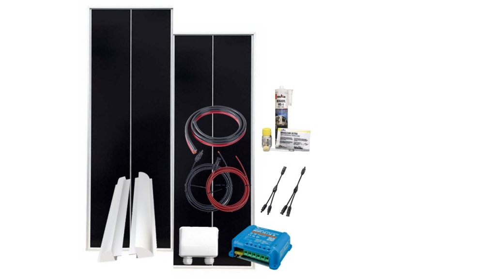 Hoogwaardige Bente solarset 2x100Watt + Victron smart mppt 75/15-complete set Zonnepaneel zwart Dit betreft een complete hoogwaardige zonnepaneel set voor uw camper of caravan. De set hebben we voor u samengesteld zodat u zelf niet meer hoeft na te denken wat er allemaal nodig is voor het aansluiten van een zonnepaneel op het dak van uw camper of caravan. De zonnepanelen hebben een hoog rendement (± 21%), zijn voorzien van een gehard / getemperd glas toplaag die 5x zo sterk is als andere kleine zonnepanelen. Victron SmartSolar MPPT (12/24V) laadregelaar Een zonnelader verzamelt energie van uw zonnepanelen en slaat deze op in uw accu's. Met de nieuwste en snelste technologie maximaliseert SmartSolar deze energie-oogst door intelligente aansturing, zodat een volledige oplading in de kortst mogelijke tijd wordt gerealiseerd. SmartSolar houdt de accu in goede conditie en verlengt zo de levensduur. De SmartSolar oplaadregelaar zal zelfs een zeer lege accu opnieuw opladen. Het kan werken met een accuvoltage dat zo laag ligt als 0 Volt, op voorwaarde dat de cellen niet permanent gesulfateerd worden of anders beschadigd werden. TÜV Solar kabel 4,0mm² vertind Met deze hoge kwaliteit solar kabels (rood en zwart) (4mm2) kunt u een veilig en goed werkend solar systeem installeren. Onder andere geschikt voor het aansluiten van zonnepanelen op een omvormer. Flexibele kabel met enkele kern, geschikt voor binnen en buiten. Niet geschikt voor onbeschermd begraven in de grond. Ook is deze kabel ozon en UV resistent. De kabels kunnen worden aangesloten aan MC4 connectoren (bijgeleverd in de set). Twinflex 2x 4 mm² PVC kabel 100% koper Twinflex is een accukabel gecombineerd van voeding (rood) en neutraal (zwart) met extra transparante PVC mantel. Dekaseal MS-5 lijmkit VERLIJMEN EN AFDICHTEN - TWEE TAKEN, ÉÉN OPLOSSING: Het achteraf inbouwen van een satellietsysteem, het bevestigen van zonnepanelen of montagehouders, haken en spiegels - allemaal klassieke taken waarmee camper- en caravanbezitters keer op keer worden geconfronteerd. En met onze producten kunnen hobbyvakmensen dit zelf doen. Verlijmen biedt talloze voordelen ten opzichte van mechanische verbindingsprocessen, die nog verder worden verbeterd door het gebruik van moderne MS-polymeerproducten Lijmset DEKAsyl MS-5 bestaande uit: -1 x 290 ml patroon Dekasyl MS-5 krachtlijm wit -1 x 30 ml fles Decavator speciale reiniger en activator -1 x reinigingsdoekenset (1x vochtige doek / 1x droge doek) Inhoud van de solarset set: - 2 x Solarpanel Shingled 100Watt/12V 1160x450x30mm silver - Victron SmartSolar MPPT 75/15 laadregelaar - Solarkabel 4,0mm2 R/Z 5 meter +MC-4 set - Twinflex kabel 2 x 4mm2 5 meter - Dakdoorvoer kunstof voor zonnepaneel 2-voudig - Montage spoiler aluminium blank 55cm ( 2 sets ) - Zonnepaneel MC-4 Y connector set male/female - DEKAsyl lijmkit set + activator + handschoentjes + tissue