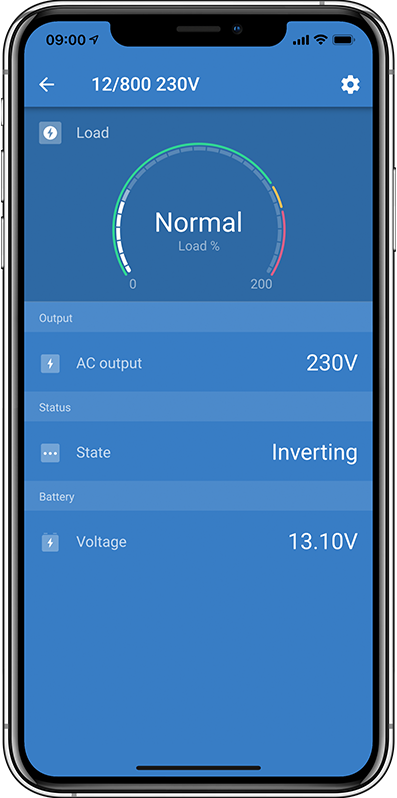 Een te diepe ontlading van de accu kan worden voorkomen door alle belastingen op de belastinguitgang aan te sluiten. De belastinguitgang koppelt de belasting los als de accu is ontladen tot een voor-ingestelde spanning. (48V-model: interface met een relais) Als alternatief kan ook voor het BatteryLife intelligent accubeheer-algoritme worden gekozen. De belastinguitgang kan worden geconfigureerd via Bluetooth of via VE.Direct en is bestand tegen kortsluiting.