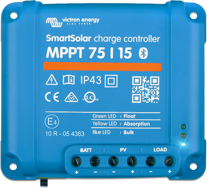 Victron SmartSolar MPPT 75/15 12/24V is een zonnelader voor 12V of 24V systemen (autoselect). Het maximaal nominaal PV-vermogen dat bij een 12V systeemspanning door de zonnelader wordt doorgegeven is 220W, en bij een 24V systeemspanning is dat 440W. De maximale PV-nullast-spanning van deze zonnelader is 75V. De SmartSolar zonne-laadregelaars hebben een programmeerbaar acculaad-algoritme, en standaard Bluetooth Smart ingebouwd om de zonnelader te kunnen instellen en zonneopbrengst te kunnen monitoren.