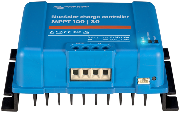 Victron SmartSolar MPPT100/30 12/24V is een zonnelader voor 12V of 24V systemen (autoselect). Het maximaal nominaal PV-vermogen dat bij een 12V systeemspanning door de zonnelader wordt doorgegeven is 440 W, en bij een 24V systeemspanning is dat 880 W. De maximale PV-nullast-spanning van deze zonnelader is 100V. De SmartSolar zonne-laadregelaars hebben een programmeerbaar acculaad-algoritme, en standaard Bluetooth Smart ingebouwd om de zonnelader te kunnen instellen en zonneopbrengst te kunnen monitoren.