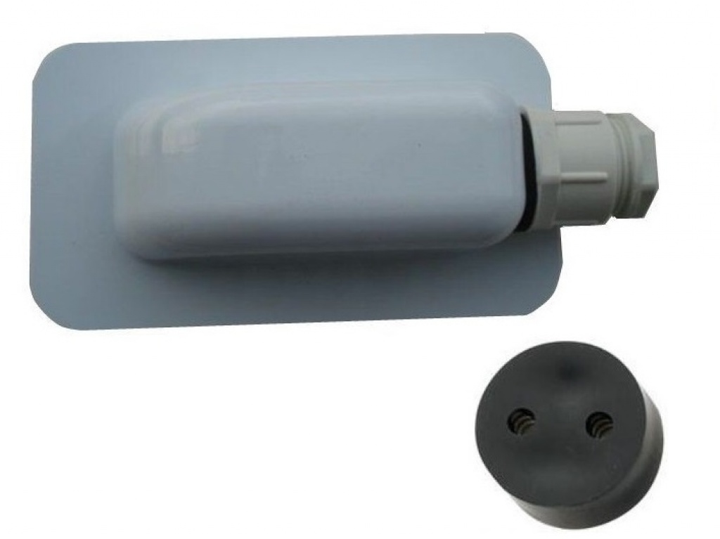 ABS Kunststof Dakdoorvoer Enkel Wit met 2 gats doorvoer rubber voor solarkabel op camper, caravan etc.