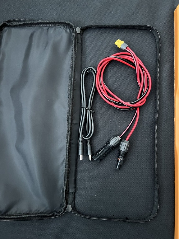 Het zonnepaneel is uitgerust met monokristallijne cellen met een rendement tot 22%, duurzame nylon behuizing, ingebouwde zak. De set bevat ook een opvouwbare standaard, zodat u de set eenvoudig kunt uitvouwen.