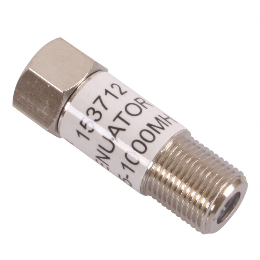 Triax F-demper die het signaal dempt met 10 dB. Voorzien van een F-connector (man en vrouw).