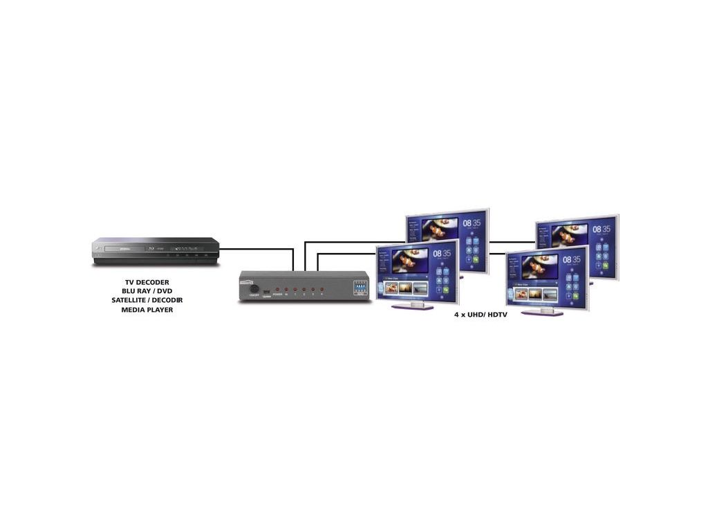 Het speciale van deze splitter is dat het apparaatje ook overweg kan met Ultra HD 4k signaal. Er zijn slechts enkele producten die dit kunnen. Daarnaast zijn de aansluitingen gemaakt van 24k goud wat voor een hoge kwaliteit zorgt. Dit wordt nog eens ondersteund door een ingebouwde versterker waardoor de kwaliteitsverlies te verwaarlozen is.