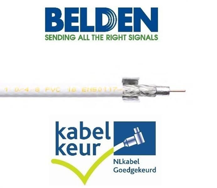 Belden H125D00 Coax DuoBondPlus PVC KABELKEUR wit Kabelkeur wordt ondersteund door alle NL kabel aangesloten bedrijven zoals Ziggo, Caiway, Cai Harderwijk, Delta, SKV, gemeente Edam-Volendam, SKP Pijnacker, Assendorptv, KTW Waalre, Kabeltex, Kabelnoord.