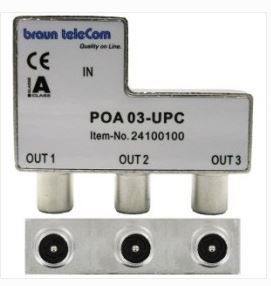 Opdruk IEC-splitter POA 03 UPC voor drie televisies.