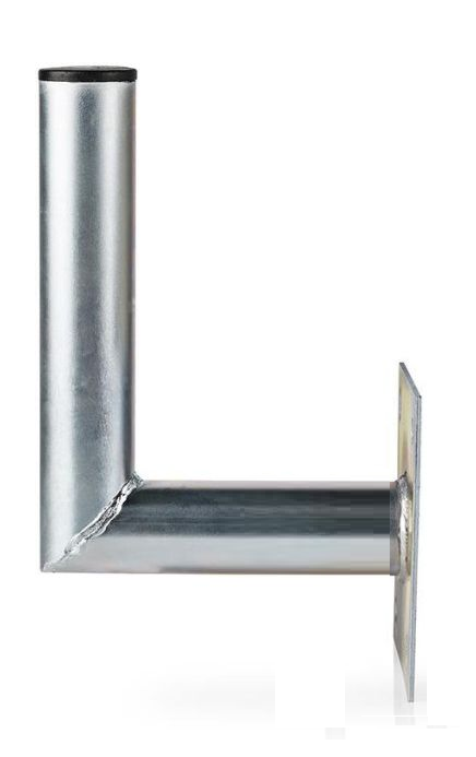 L-vormige bad gegalvaniseerde stalen muursteun muurbeugel 25 cm (buisdikte 42 mm) met afsluitdop om schotels, digitenne antennes, fm en DAB+ antennes en wifi antennes te bevestigen aan gevels, muren of schoorstenen.