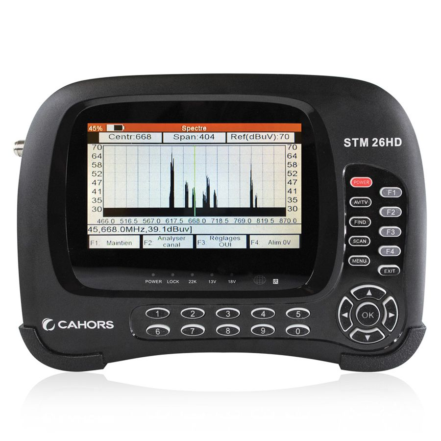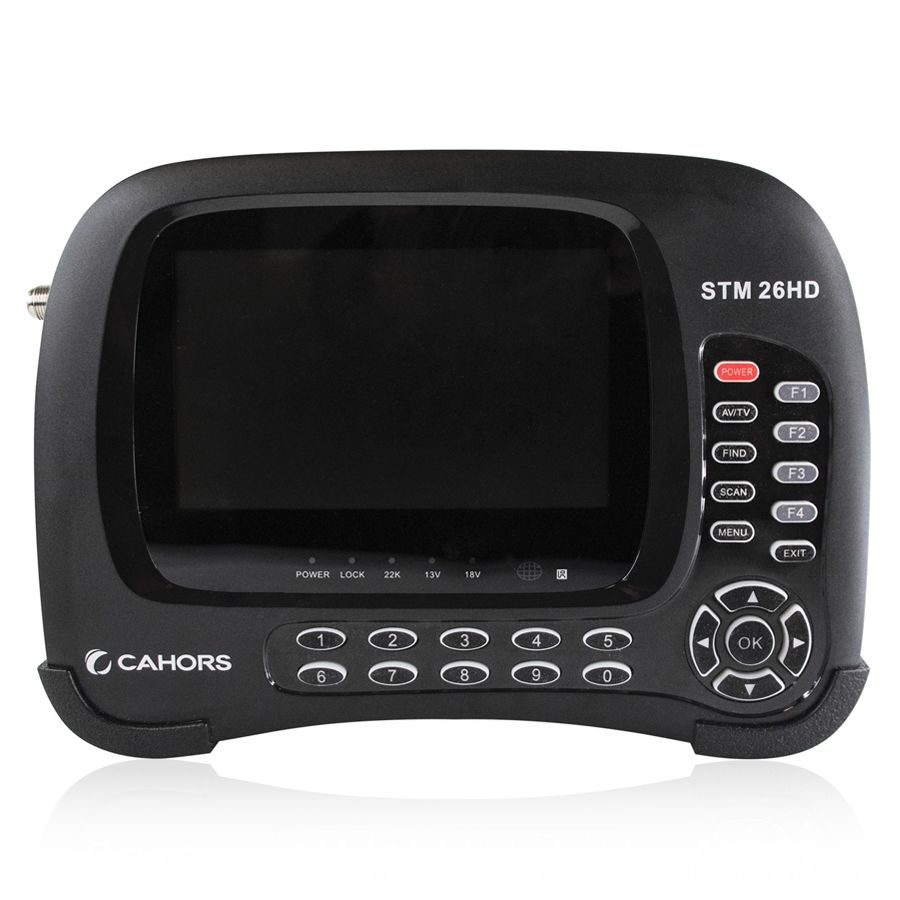 De Cahors STM26HD compact meter heeft een 7" led-kleurenscherm en gaat 5-6 uur mee op de accu. De lichte SAT/TER-meter zit in een duurzame behuizing en wordt geleverd met een stevige draagtas.