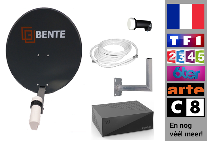 Wilt u de Franse televisie- en radiozenders zonder abonnement kunnen bekijken? Dat kan met deze schotelset, de set is samengesteld voor ontvangst van de gratis te ontvangen Franse televisiezenders.