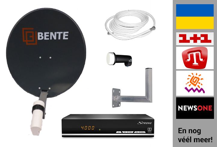 Wilt u de Oekraiense televisie- en radiozenders zonder abonnement kunnen bekijken? Dat kan met deze schotelset, de set is samengesteld voor ontvangst van de gratis te ontvangen Oekraiense televisiezenders.