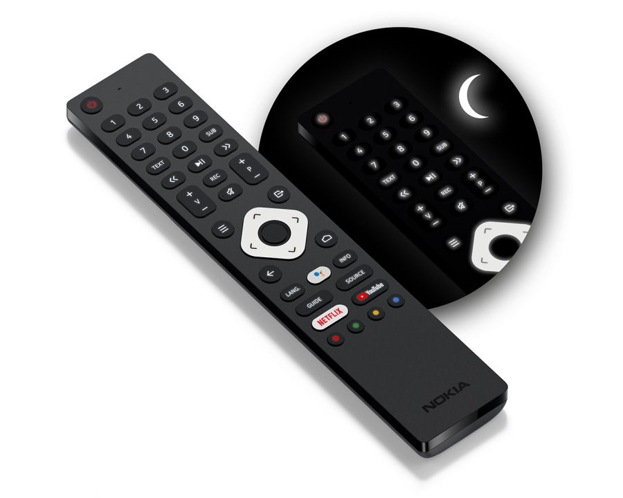 Nokia producten onderscheiden zich in bedieningsgemak. Een voorbeeld hiervan is de ergonomische Bluetooth afstandsbediening met spraakbesturing. Via de voorkeurtoetsen heb je direct toegang tot een aantal veelgebruikte apps zoals Netflix, YouTube, Prime Video en Google Play. Extra handig zijn de verlichte toetsen, zodat je ook in een donkere ruimte altijd de juiste toets indrukt.