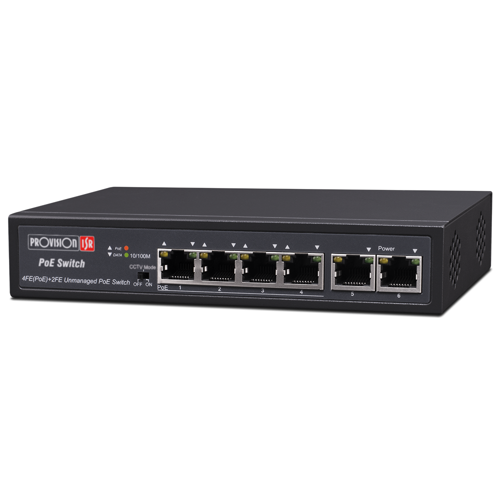 De PoES-00460C+2I van Provision-ISR is speciaal ontwikkeld voor de beveiligingsbranche. De switch met 2x 10 100 mbps uplink poorten en 4x 10 100 Mbps PoE poorten beschikt over een CCTV stand voor het overbruggen van langere kabel afstanden. Dit zelfs tot een maximum van 250 meter. Met een maximaal vermogen van 60 W en 15W. (max 30 W.) per aansluiting kan de PoES-0460C+2I diverse apparaten zoals o.a. IP-camera's voeden. Met de PoES-0460C+2I is ook een Vlan te maken en hij beschikt over overspanningsbeveiliging en voldoet aan de IEEE802.3af at. Specificaties
